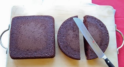 Nakon što ispečete kore po receptu koji inače koristite – od kvadrata napravite osnovu za srce a od kruga napravite 2 polukruga kao na slici. Ukoliko prvi put pravite tortu sa pečenim korama pogledajte ovdje RECEPT .