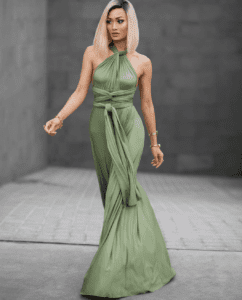 Iako nije boja koja nas asocira na eleganciju, u specifičnim krojevima može biti vrlo efektna i izgledati božanstveno. Kada su posrijedi tamnije nijanse, bolje izgleda na ukrojenim ravnim modelima i čvrstim materijalima, dok u svojim maslinastim tonovima najviše dolazi do izražaja na ženstvenim i lepršavim haljinama.