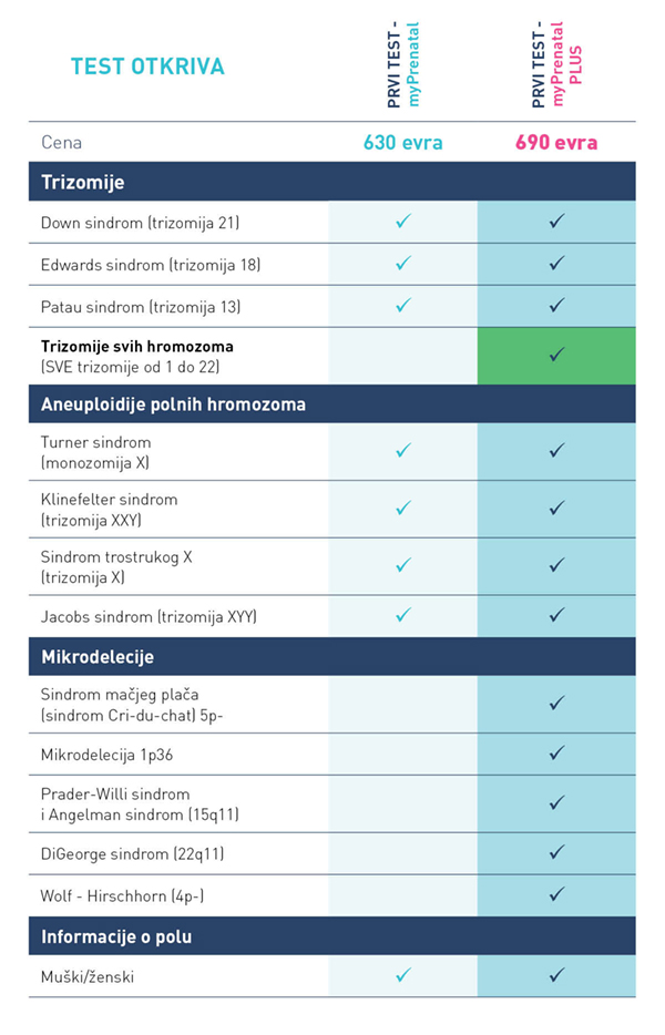 Za iznos od 690eura test myPrenatal plus nudi roditeljima, pored standardnih i dodatne analize trizomija.