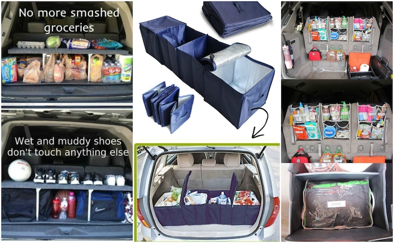 Kutijice i kutije za različite sadržaje. Prednost ovakve organizacije je što ih možete sklopiti i prenijeti dječje stvarčice bez imalo muke, nereda i skupljanja stvari po automobilu. Tu je, naravno, i kanta za otpatke, neizostavni pratilac na putovanjima.