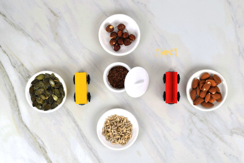 Ova užina je najjednostavnija užina ☺ a jako hranljiva i zdrava. Kada ne stignete da spremite ono što ste planirali, ili prosto morate na brzinu da izađete u park, spakujte u kutijicu ili čuvalicu šaku badema, lješnjaka, golice, suncokreta…