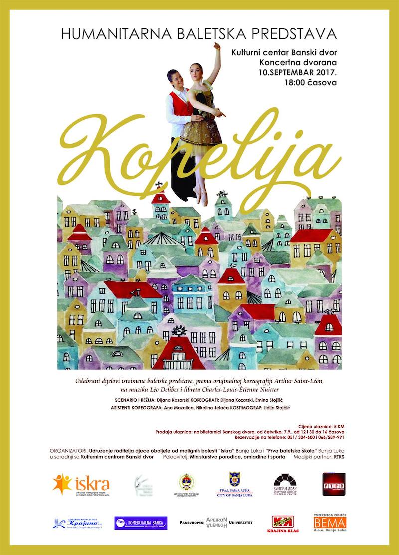 Humanitarna baletska predstava KOPELIJA za pomoć djeci oboljeloj od malignih bolesti odigraće se 10. septembra u Kulturnom centru Banski dvor u terminu od 18 časova.
