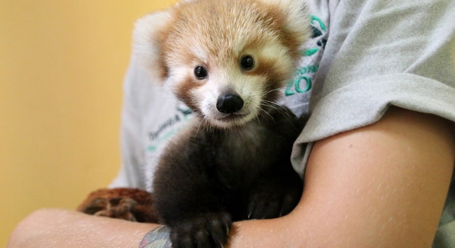 12. Crvena panda sa radoznalim, bebećim okicama.