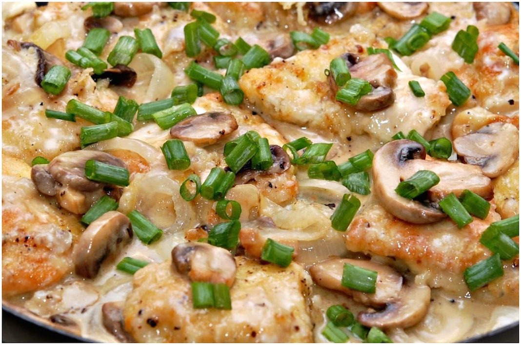 Na istom ulju izdinstajte glavicu nasjeckanog crvenog luka. Na dno vatrostalne posude redajte luk i preko njega meso. Zatim redajte gljive nasječene na kriške.