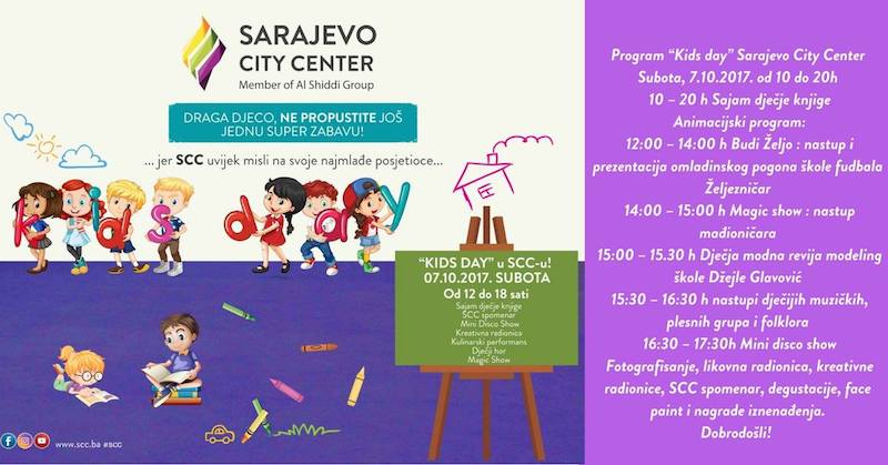 Super zabava “Kids Day” za najmlađe povodom obilježavanja Dječje nedjelje u Sarajevu održaće se u Sarajevo City Centru u subotu 07. oktobra, sa početkom u 10:00 časova.