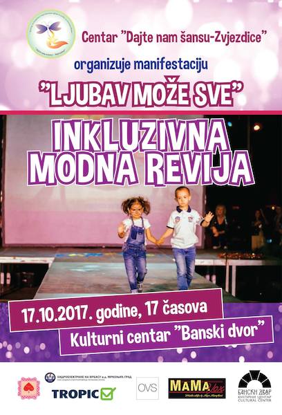 Centar “Dajte nam šansu – Zvjezdice” organizuje manifestaciju “Ljubav može sve” u utorak 17. oktobra u Kulturnom centru “Banski dvor”, u sklopu koje će biti organizovana Inkluzivna modna revija.