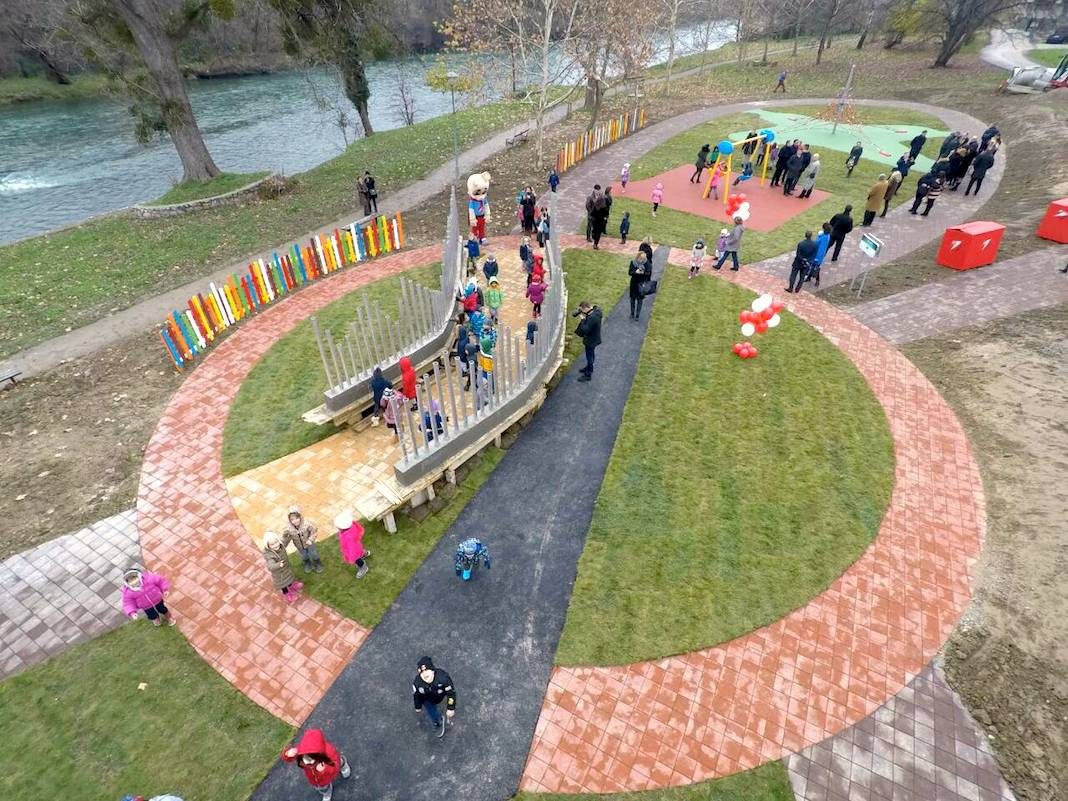 Novizgrađeno dječje igralište na plaži kod Zelenog mosta u MZ Obilićevo, površine oko 2.280m2, danas su svečano otvorili gradonačelnik Igor Radojičić i direktor Unikredit banke Gordan Pehar, koja je banjalučkim mališanima poklonila ovo igralište.