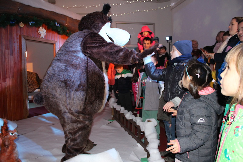 Rasplesano je bilo i u “Snješkovu”, a na samom ulazu djecu je dočekao Medo, najbolji drugar plavooke, nestašne Maše. U sniježnom ambijentu ispred svoje ušuškane kućice, Medo je srdačnim nastupom prema razdraganim mališanima opravdao epitet “najveće dobričine u istoriji crtanog filma”.