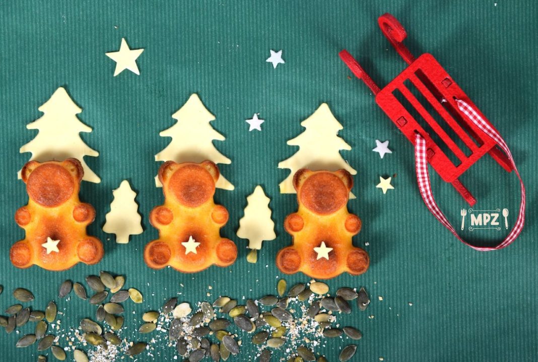 Sjediniti sve sastojke u smjesu malo gušću nego za palačinke. Izliti u željene kalupe. U zavisnosti od rerne, peći na 180 stepeni, oko 45 minuta ili dok ne dobiju zlatkastu boju.