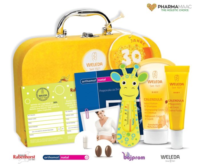 Ali da zadovoljstvo bude veće, u koferu će mame pronaći i Weleda uzorke za njegu osjetljive bebine kože, Orthomol Natal za nastavak unosa vrijednih mikronutrijenata tokom dojenja, termometar za tačno određivanje idealne temperature vode firme Bojprom, brošure sa savjetima i, naravno, neizostavne kupone sa vrijednim popustima, i to 30% na jedan proizvod iz Weleda asortimana, 20% na Rabenhorst sok po odabiru i 10% na Orthomol proizvod po želji.
