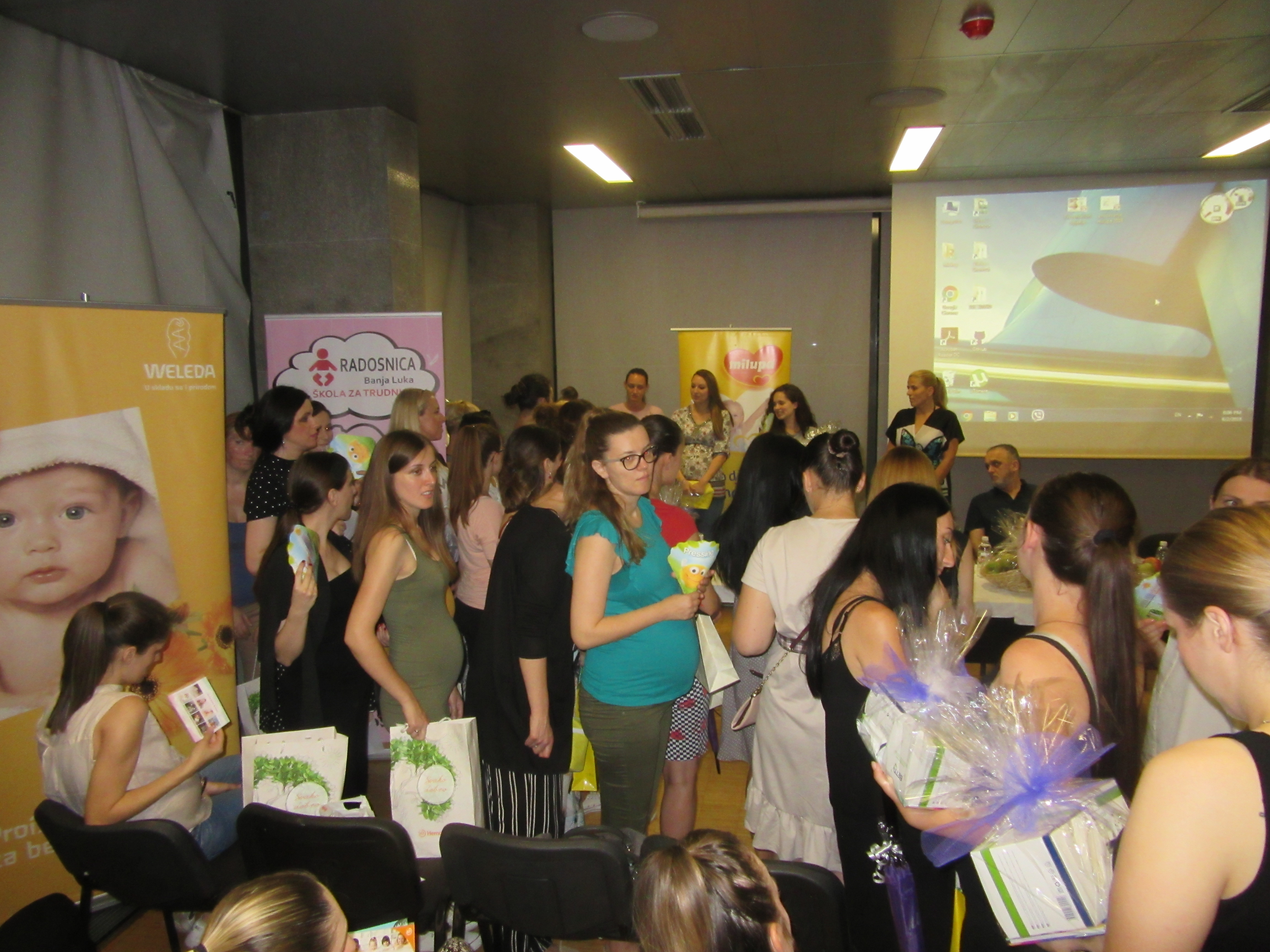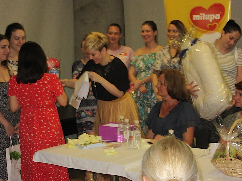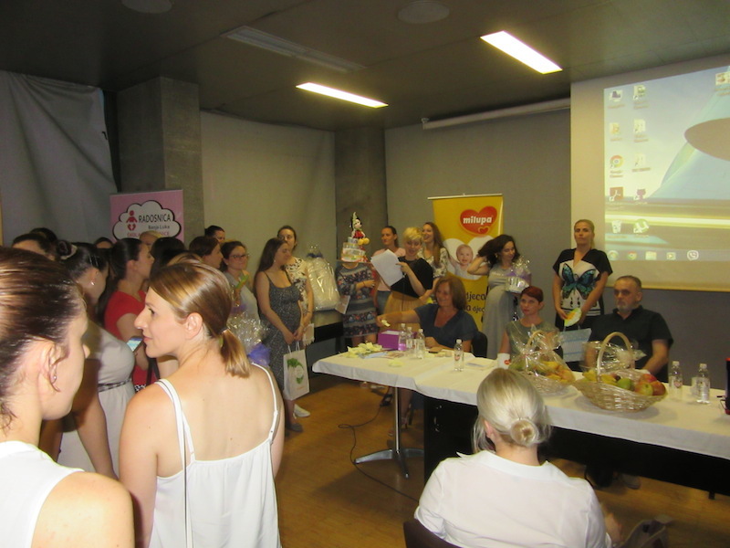 Nakon stručnog predavanja uslijedila je nagradna igra sa bogatim nagradama, a među poklonima su se našli: baby njanjalica, Dr Browns flašice, Hemofarm, Weleda, Anafarm i Salveo paketi, jastuci za dojenje, edukacije, torbe za pelene, trudničko i newborn fotografisanje, torta od pelena, trudnički dnevnici i još mnogo toga.