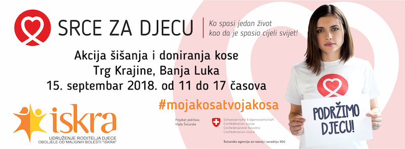 Akciju šišanja i doniranja kose kako bi se izradile perike za djecu oboljelu od raka organizuju sarajevsko Udruženje “Srce za djecu oboljelu od raka” zajedno sa Udruženjem roditelja djece oboljele od malignih bolesti “Iskra” iz Banja Luke.