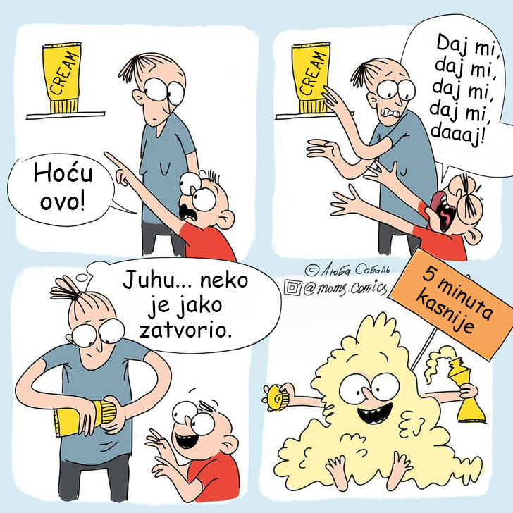 Umjetnica iz Rusije po imenu Ljuba Sobol je majka jednog sina i voli da opisuje svoje intenzivne dane roditeljstva u svojim smješnim stripovima koji pomažu ostalim roditeljima da ostanu optimisti.