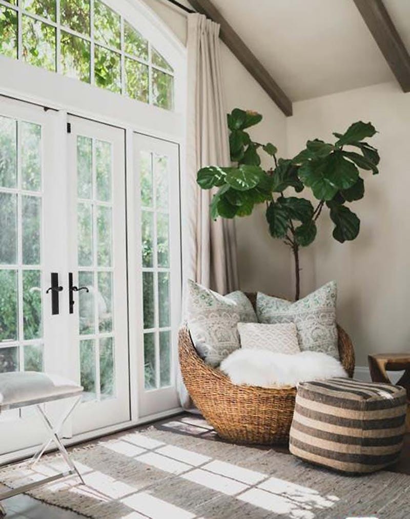 3. Preuredite neiskorišteni dio prostora u ćoše za čitanje. Lirasti fikus (Ficus lyrata) i ogrooomna pletena fotelja naprosto zovu na popodnevnu dremku.