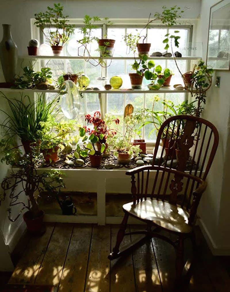 6. Prazan prozor možete da dekorišete retro policama koje ćete da popunite baby-biljkama. Svemu dodajte starinsku stolicu na ljuljanje i uživajte u ugođaju.