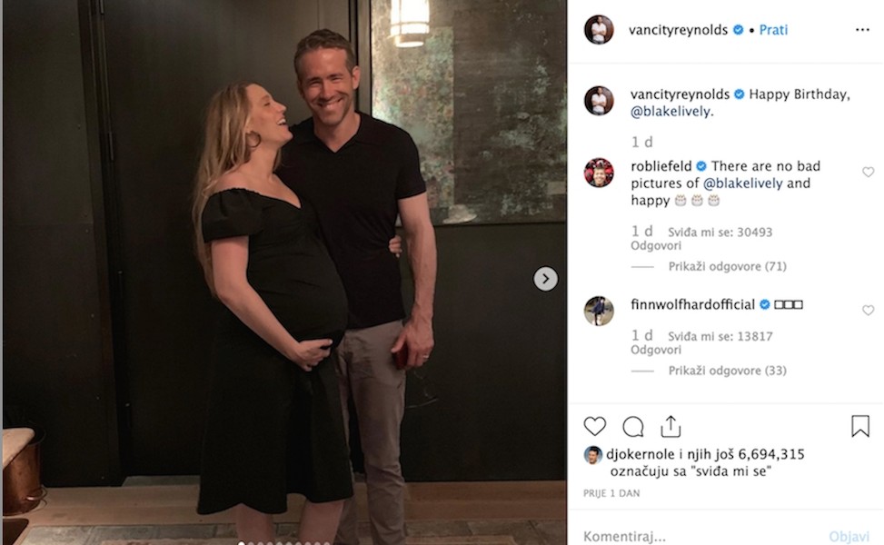 Poznati glumac je ovaj put objavio niz urnebesnih fotografija sa suprugom uz prigodnu čestitku: “Srećan rođendan Blake”. Na fotografijama je glumica ispala ili mutno, sa grimasom ili zatvorenih očiju, dok je Reynolds na svakoj ispao odlično.