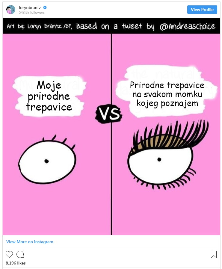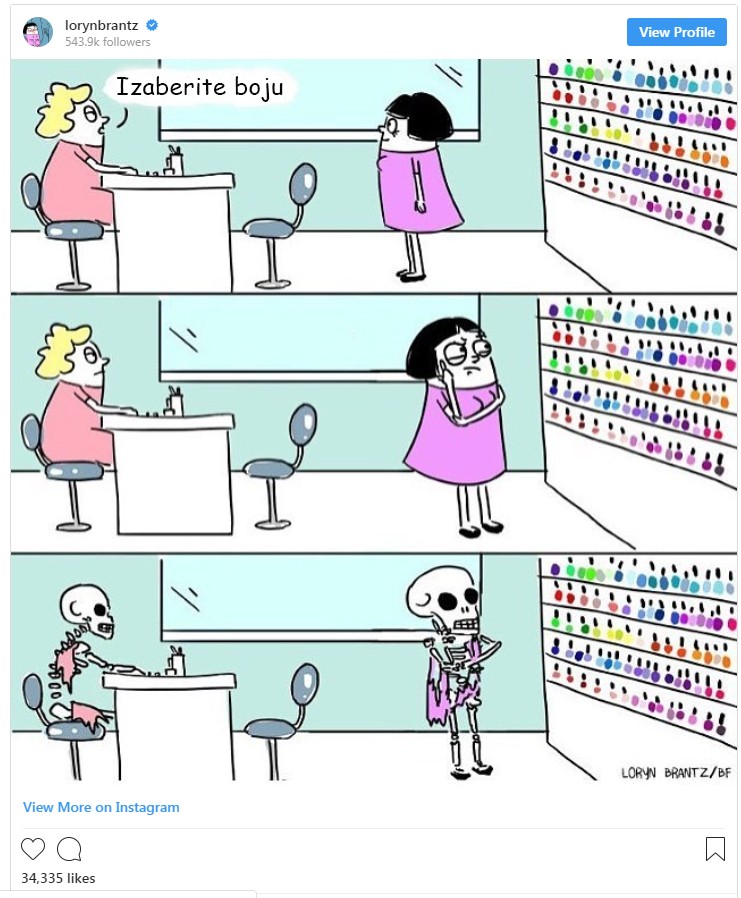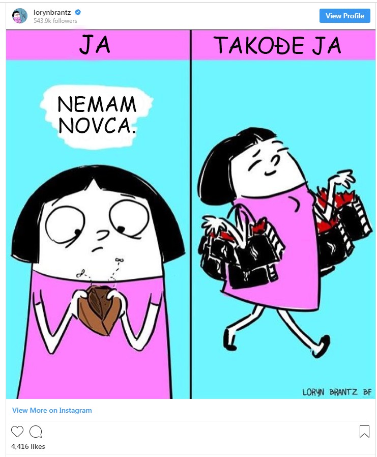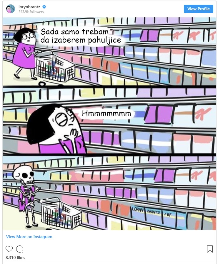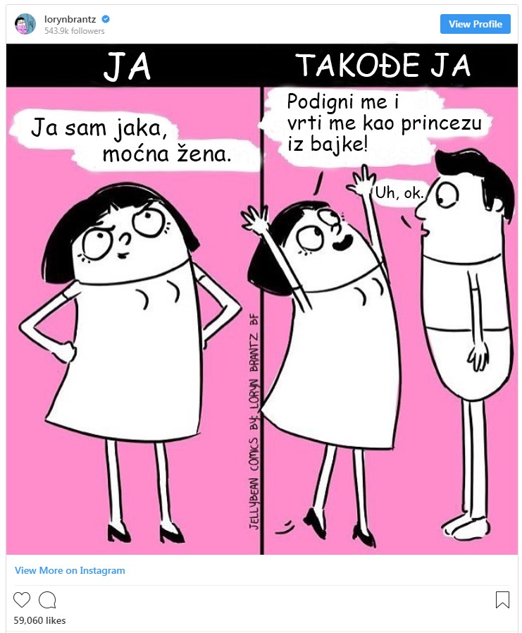 Neki tvrde da samo žena može razumjeti drugu ženu. Ne znamo je li to istina, ali izgleda kao da jedna umjetnica zaista razumije probleme žene. Upoznajte rad Loryn Brantz, dva puta nagrađene prestižnom nagradom Emmy. Ilustracije su toliko tačne tako da se svaka žena može naći u njima, a svaka od njih na realističan i duhovit način prikazuje kako je biti žena …