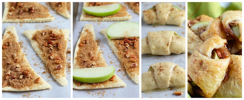 Na svaki trokutić stavite po krišku jabuke i urolajte. Premažite maslacem svaki komad i pospite još malo cimetom.