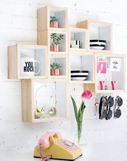Tako je važno iskoristiti prednost slobodnog zidnog prostora. Jedan od načina da to učinite je da nabavite ili napravite police nalik na kutijice, kao što je prikazano na slici.
