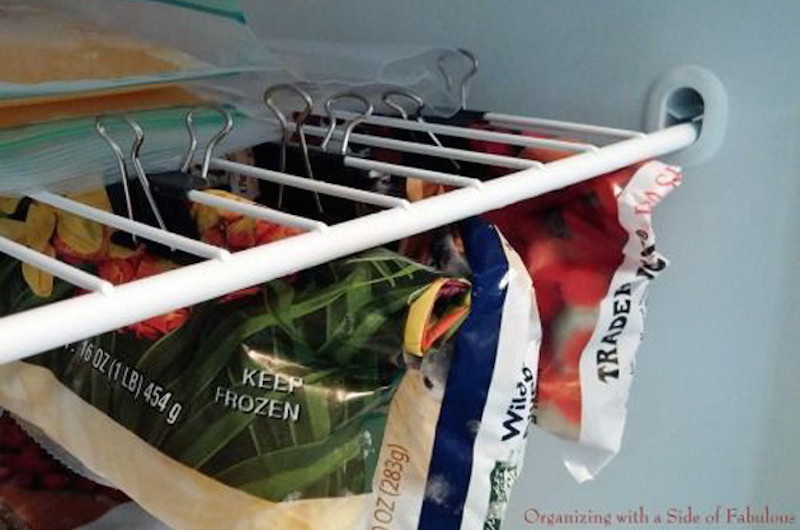 5. Napravite više prostora u frižideru tako što ćete pomoću štipaljki za papir vješati otvorene vrećice sa hranom ispod polica.