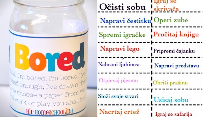 Kada se malac dosađuje, neka izvuče zadatak, poput spremanja sobe, čitanja knjige, crtanja crteža, pravljenja lutkarske predstave, pjevanja pjesme i slično – na taj način će se dobrovoljno angažovati i oko stvari koje inače nerado čini, jer sve podsjeća na igru. - Teglica može da bude i jedinstven rođendanski poklon koji ćete da napravite zajedno sa vašim djetetom za njegovu drugaricu ili drugara.